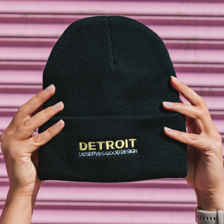 Detroit loves design, and Detroit loves classic workwear. We embroidered this knit beanie with white and metallic gold thread, so you can add some understated shine to your day.
