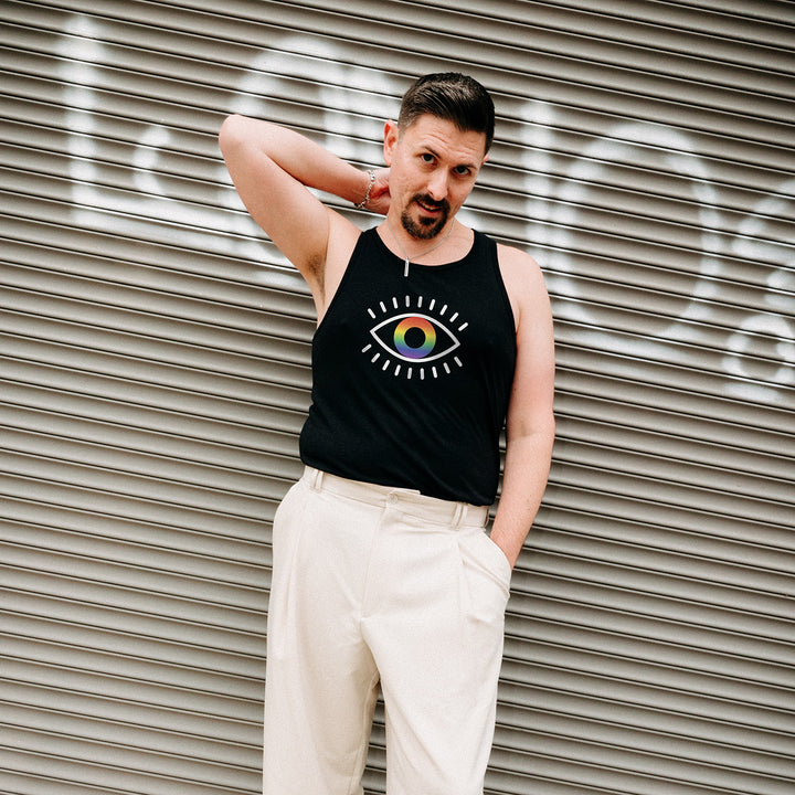 The classic cut Pride Tank is made for turning heads and owning your truth—boldly and comfortably. Featuring Moxie’s rainbow eye emblem on the front (a symbol of protection, intuition, and staying true to yourself), and our logo on the back, it’s the perfect mix of statement and staple.